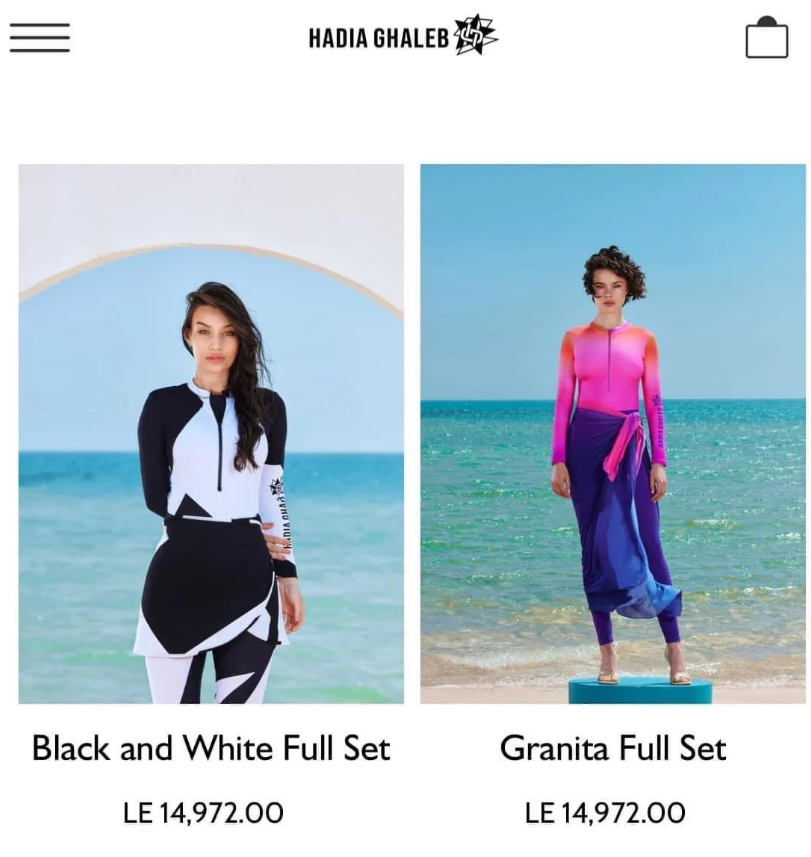 ووفقًا لما يجري تداوله في منصات التواصل الاجتماعي، يبلغ سعر ملابس السباحة الخاصة بالمحجبات (البوركيني) في موقع "هادية غالب" حوالي 15 ألف جنيه مصري، أي ما يعادل 317 دولار أمريكي.