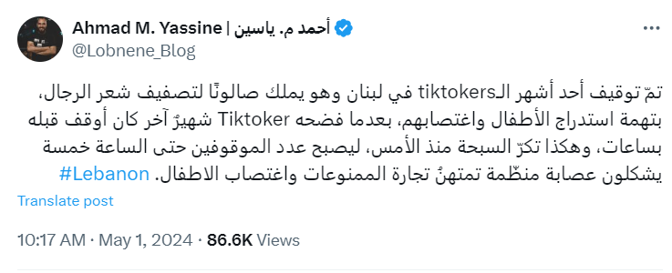 لا حديث على منصات التواصل الاجتماعي في لبنان سوى عن التيكتوكر الشهير والعصابة التي تمتهن التجارة بالممنوعات واستدراج الأطفال تمهيدًا لاغتصابهم في أحد صالونات التجميل.