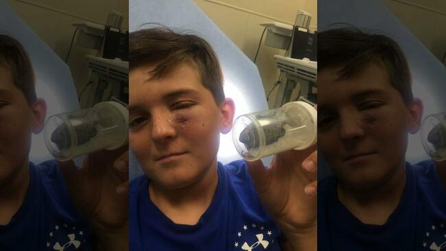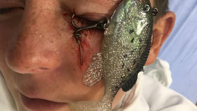 تعرض صيّاد أمريكي يبلغ من العمر 11 عامًا لحادث مؤلم حين علقت صنارة الصيد بجفن عينه أثناء رحلة صيد كان يقوم بها في إحدى بحيرات مدينة سوميرفيل بولاية كارولينا الجنوبية وخده يوم الخميس الماضي.