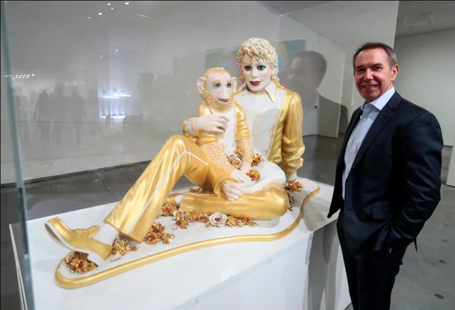 يذكر أن "جيف كونز" المولود في 21 من كانون الثاني سنة 1955 هو فنان أميركي معروف بإعادة إنتاجه لأشياء تافهة مثل حيوانات البالونات التي صنعها من الفولاذ غير القابل للصدأ أو الـ"ستانلس ستيل" وغطاها بورق عاكس كالمرآة.