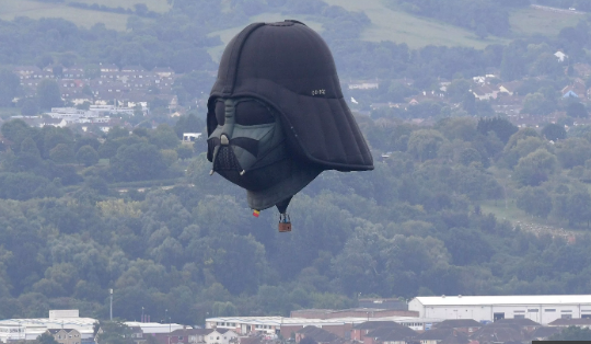 وقد فوجئ المشاركون بالمهرجان بمنطاد أسود اللون عملاق على شكل قناع شخصية "دارث فيدر" الشرير من سلسلة أفلام "ستار وورز - حرب النجوم" يحلّق فوق ميناء بريستول الإنجليزي.