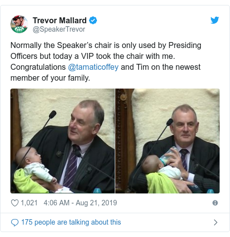 وأرفق "مالارد" الصورة بتغريدة قال فيها: " عادة ما يتم استخدام كرسي المتحدث من قِبل كبار المسؤولين الذين يترأسون الجلسات فقط.. لكن اليوم تولى شخص مهم الرئاسة معي، أهنئ البرلماني تاماتي كوفي على العضو الجديد في عائلتك".