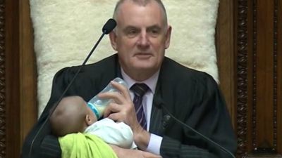وبعد أن أنهى الأب "تاماتي" إجازته الأبوة، قرر اصطحاب رضيعه للبرلمان.