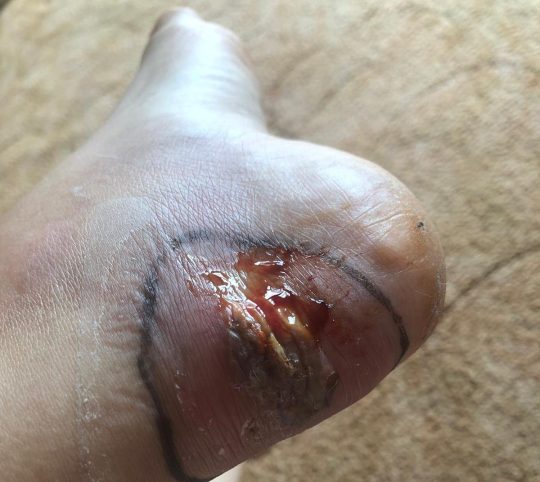واكتشف الأطباء معاناتها من تعفن الدم، كما لاحظ الأطباء أنها لو انتظرت يومين لكان عليهم بتر قدمها.