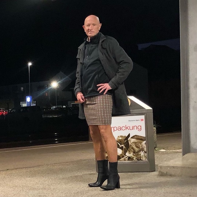 قرر رجل متزوج يبلغ من العمر 61 عامًا أن يتحدى الأعراف المتعلقة بالنوع الاجتماعي (ذكر/أنثى) في العمل من خلال ارتداء التنورة بشكل يومي للذهاب إلى العمل أو التجوال في بلدته.