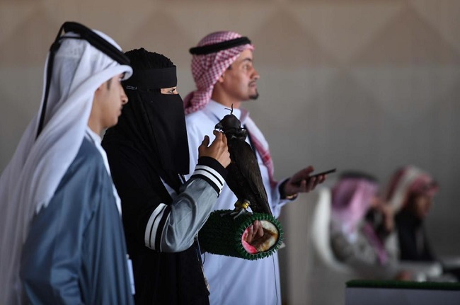 والصيد بالصقور جزء مهم من التراث الثقافي الصحراوي للعرب في السعودية والدول المجاورة منذ آلاف السنين، وكرّم مهرجان الملك عبد العزيز للصقور عذارى الخالدي ومنحها جائزة باعتبارها أول امرأة تتأهل بطائرها للمشاركة في الحدث.