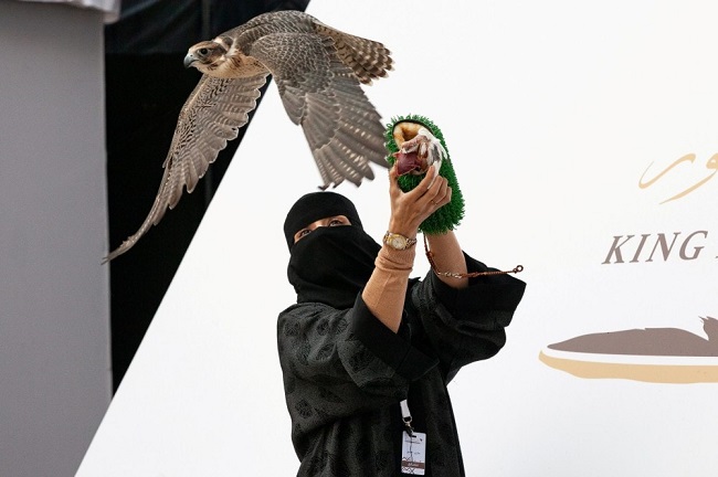 وعرضت الصقارة السعودية عذاري الخالدي بمهارة طائرها الجارح في مهرجان الصقارة السنوي بالسعودية، وهي المرة الأولى التي تشارك فيها امرأة في هذه المنافسة التي يهيمن عليها الرجال بالسعودية.
