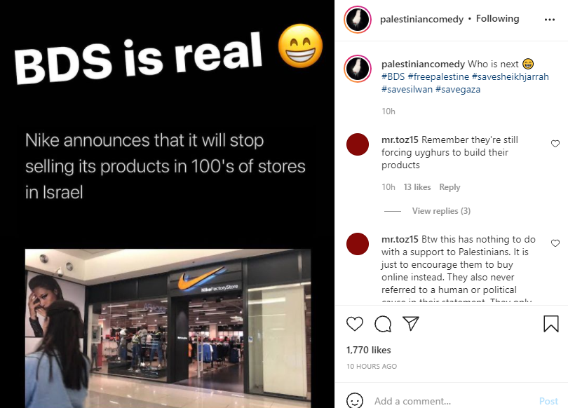 تلقى رواد مواقع التواصل الاجتماعي في العالم العربي وتحديدًا في فلسطين المحتلة قرار شركة شركة تصنيع الملابس الرياضية الأمريكية "نايكي – Nike" الأخير بحظر بيع منتجاتها في دولة الاحتلال الإسرائيلي بتأييد ودعم.