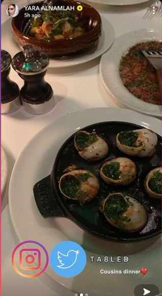 وكتب أحد الحسابات: "ركزوا على الطبق الاحمر الي فوق صاير ف النص في الصورتين ونفس الأكل وطرف الشوكة عند الي فوق في صورة يارا وصايرة على اليسار في صورة ياسر !!!!".
