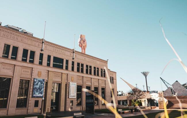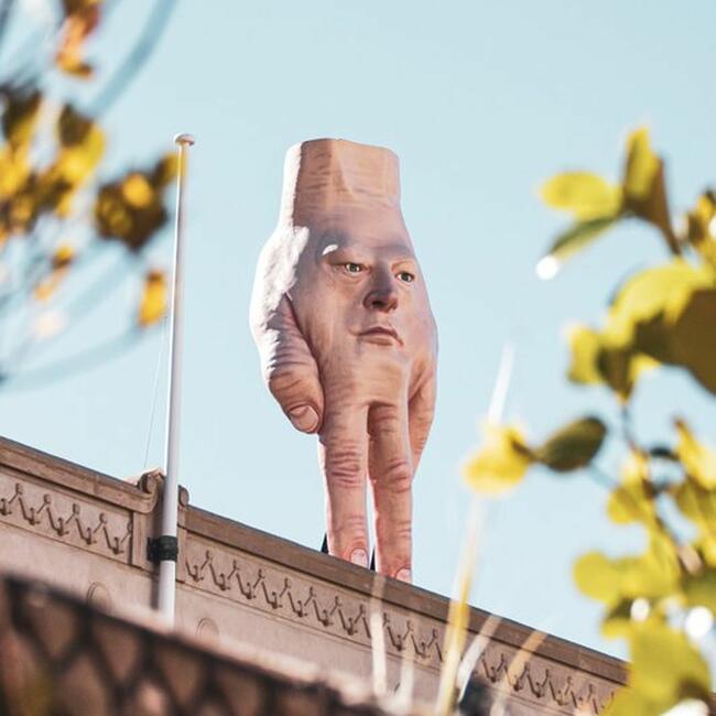 فوجئ سكان العاصمة النيوزيلندية، ويلينغتون، بـ"يد" عملاقة يزيد ارتفاعها على 5 أمتار ولها وجه بشري حطت على سطح متحف الفنون المعاصرة.