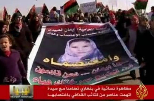 خرجت العبيدي وهي تصرخ"انظروا إلى ما يحدث.. مليشيات القذافي تختطف النساء بالسلاح وتغتصبهن.. إنهم يغتصبونهن".