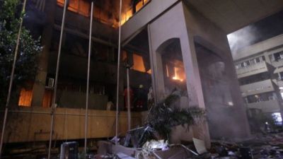اندلعت النيران فجر الثلاثاء بمبنيين احدهما يضم مقر وزارة التفتيش والرقابة الشعبية التي تعنى بمكافحة الفساد في ليبيا بعد غارات شنها الحلف الاطلسي، فيما انشق شكري غانم رئيس المؤسسة الوطنية للنفط على نظام معمر القذافي وانضم للثوار.