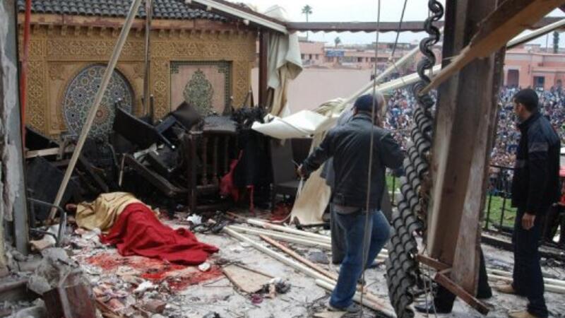 وتجمع المتظاهرون ومعظمهم شبان قادمون من عدة مدن مغربية، في وسط مراكش وتوجهوا الى ساحة جامع الفنا التي تعرضت قبل عشرة ايام الى اعتداء اسفر عن سقوط 17 قتيلا بينهم 13 سائحا اجنبيا.