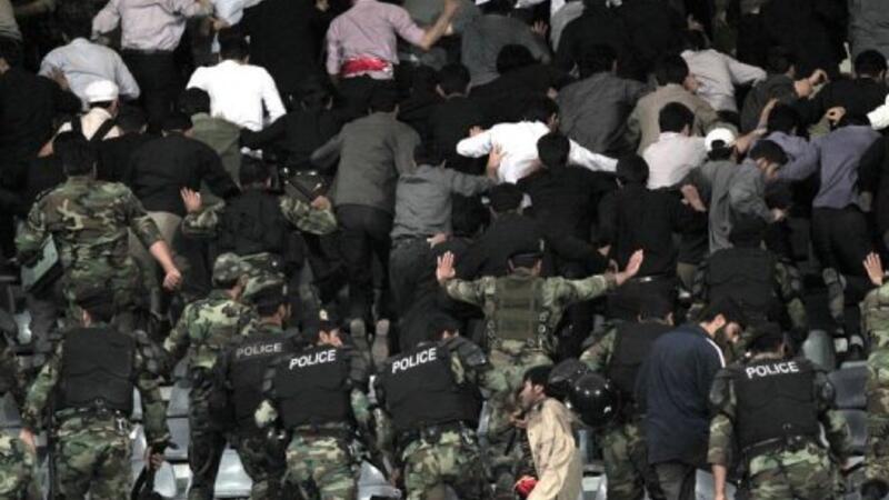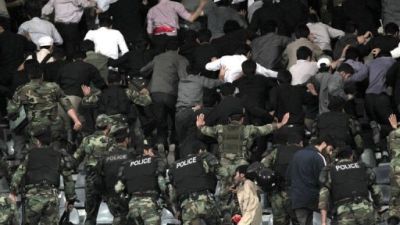 شرطة مكافحة الشغب الايرانية تخرج بالقوة متشددين من الباسيج من الملعب