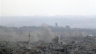 دخان يتصاعد في سماء مدينة اللاذقية السورية