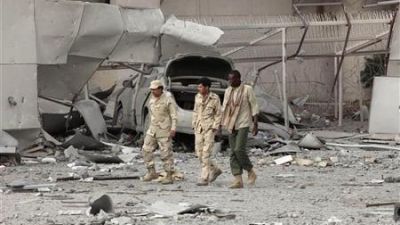 ارشيف/ اثار غارة شنها الاطلسي على موقع في قاعدة باب العزيزية قرب طرابلس