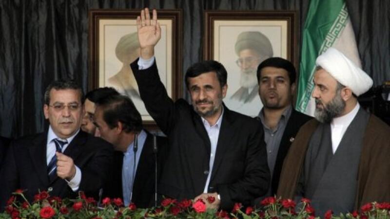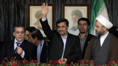 وكان احمدي نجاد وصل الى الملعب البلدي حيث اقيم احتفال شعبي تكريما له متأخرا ساعتين عن الموعد المحدد. واشتعلت الحشود بالهتافات عندما اطل على المنصة، واطلقت في الهواء بالونات بالوان العلم الايراني: الاحمر والاخضر والابيض.