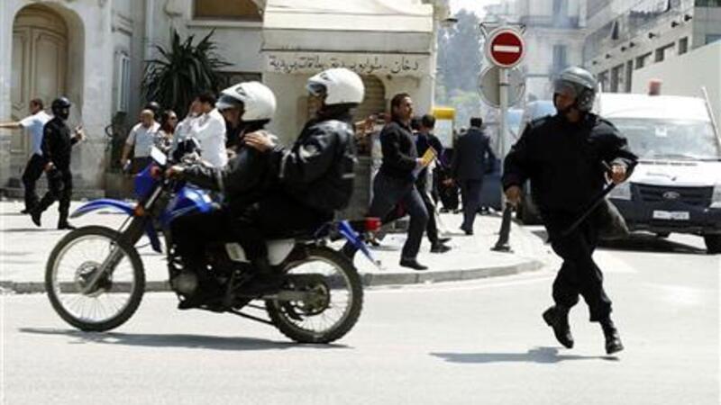 واطلقت الشرطة الغاز المسيل للدموع لدفع المحتجين الى شوارع جانبية بعيدا عن شارع الحبيب بورقيبة في وسط المدينة.