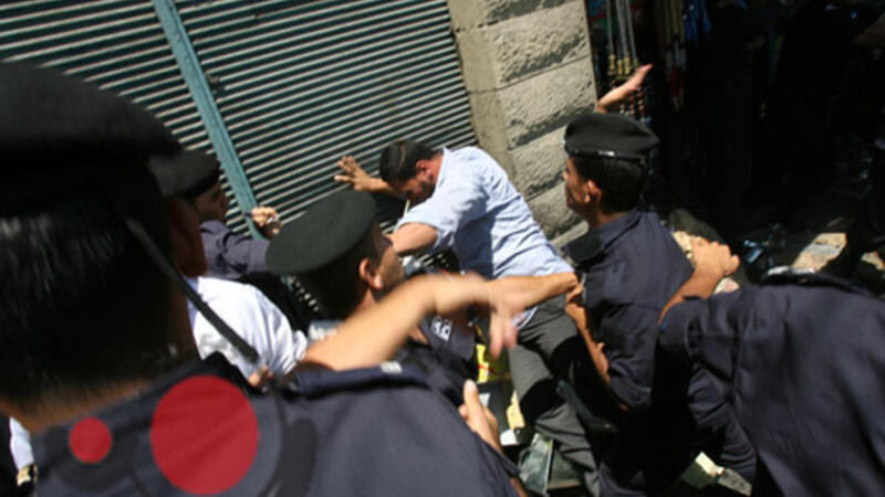 صورة بثها موقع عمان نت لرجال شرطة يقومون بضرب متظاهرين