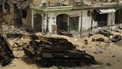 ولاقى المئات حتفهم في الحصار منذ خرج سكان المدينة في انتفاضة ضد القذافي. وفشلت غارات حلف شمال الاطلسي الجوية ضد مدرعات القذافي في وقف الدمار.
