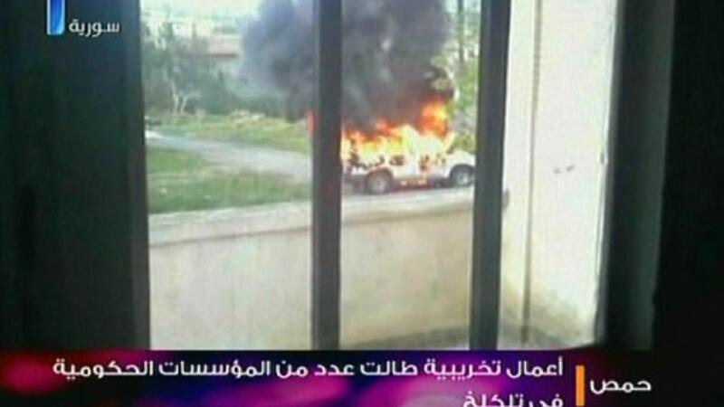 صورة من التلفزيون السوري عن "اعمال تخريبية في تلكلخ"