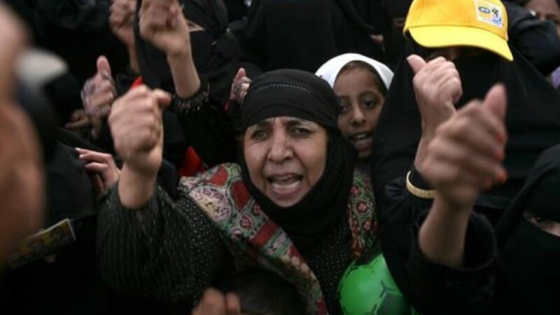 يمنيات يهتفن خلال تظاهرة في صنعاء السبت