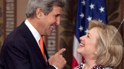بعيدًا عن السياسة.. هيلاري كلينتون وجون كيري يرقصان على الأغاني الهندية (فيديو)