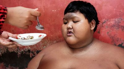 بعمر 11 عاما فقط، وصل وزن الطفل الإندونيسي «آريا بريمانا» نحو 190.5 كيلو جرام، ما يجعله الطفل الأضخم في العالم، ولكن مع معضلة خطيرة تجعله على حافة الوفاة، إذ أن الطفل قد يأكل نفسه من كثر نهمه للطعام.