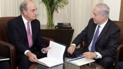 رئيس الوزراء الاسرائيلي بنيامين نتانياهو (يمين) والمبعوث الاميركي جورج ميتشل