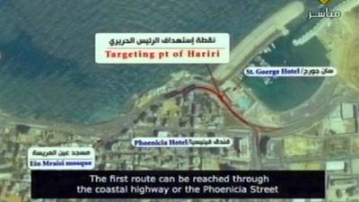 وتم عرض فيلم لاستطلاع طائرات إسرائيلية حول أمكنة كان يتنقل بينها الحريري ومنها مدينة بيروت وخاصة مكان سكنه والمقر الحكومي القديم والمقر الحديث وتركيز الاستطلاع الجوي الإسرائيلي على مقر البرلمان الذي انطلق منه الحريري قبل اغتياله وكامل الساحل البحري بما في ذلك مكان اغتيال الحريري.