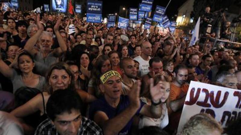 وكتب المتظاهرون على واحدة من اللافتات عبارة "الشعب يريد العدالة الاجتماعية". وتحاشت اغلب اللافتات الرسائل الحزبية المعارضة للحكومة وركزت على مواجهة مباديء نتنياهو المنحازة للسوق الحرة.