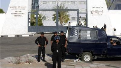 الشرطة المصرية تحرس مدخل مستشفى شرم الشيخ الدولي