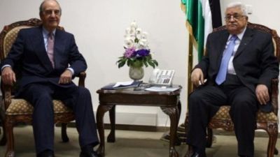جورج ميتشل خلال لقائه بعباس في رام الله-ارشيف