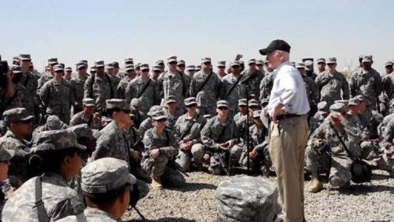 وزير الدفاع الاميركي روبرت غيتس متفقدا الجنود في كامب ليبرتي