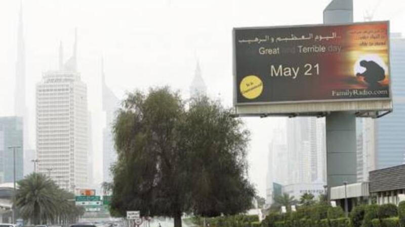 انتشرت لوحات إعلانية تدعو ليوم القيامة في دبي، مما استدعى المدون الإماراتي سنيار للوم البلدية:
