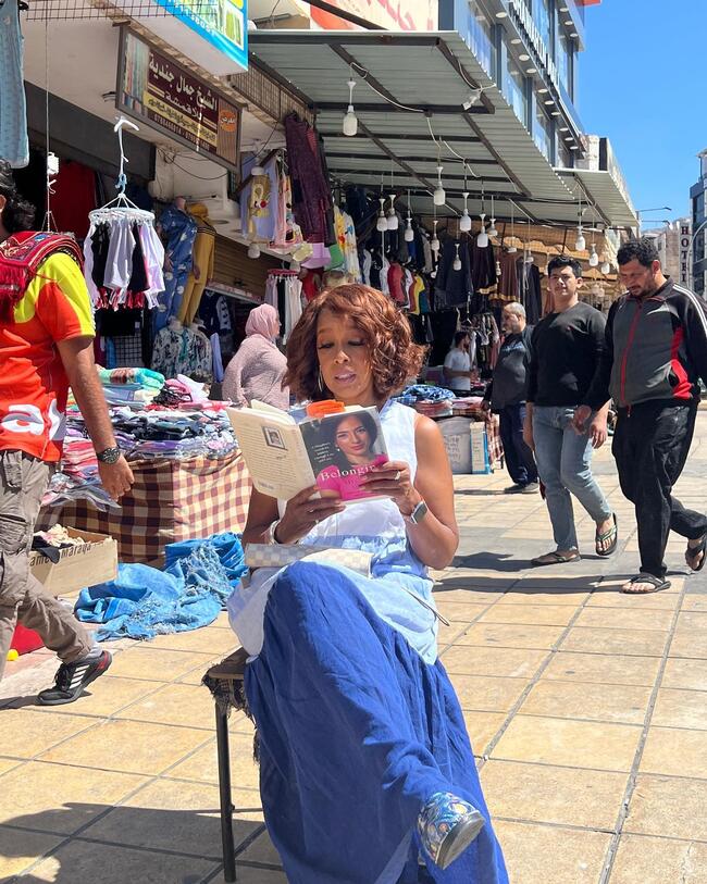 على صعيد آخر، شاركت جايل كينج صور وثقًتها للزيارة التي أجرتها للعاصمة الأرجنية عمان، ظهرت فيها جالسة على كرسي أمام أحد الأكشاش، في حين انهمكت بقراءة كتاب للصحفية الأمريكية ميشيل ميلر.