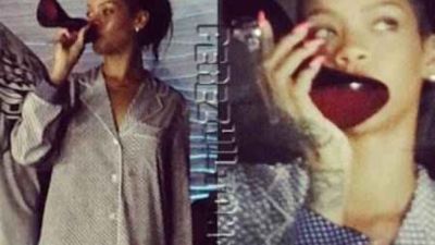 شوهدت النجمة ريهانا، تشرب من شيء لا يخطر في الحسبان وهو حذاء أسود لامع، حسب موقع النشرة.