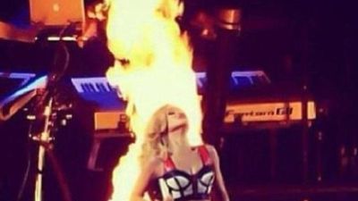 وتم التقاط هذه الصورة خلال حفلة لها في البرتغال ضمن جولتها الغنائية العالمية وتأتي هذه النيران جزء من الإستعراض الذي قدمته على المسرح.