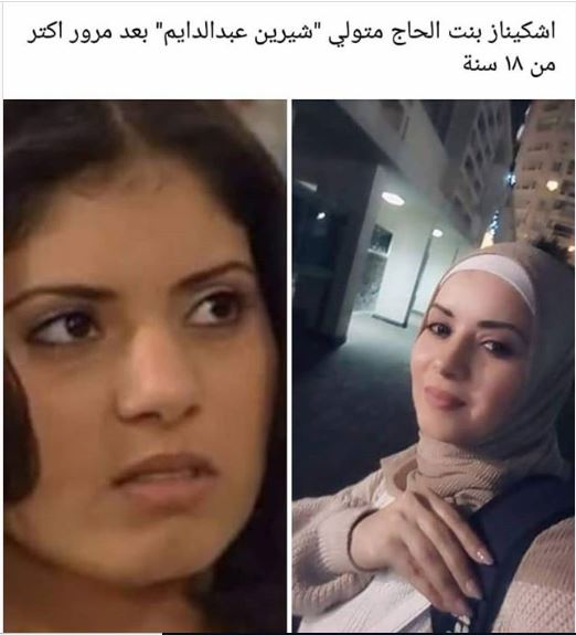 تداول الجمهور صورة للممثلة المصرية المعتزلة "شيرين عبد الدائم" والتي عرفت من مسلسل "عائلة الحاج متولي" بدور"اشكيناز" ابنة الممثل المصري نور الشريف.