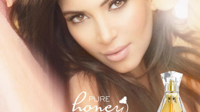 أطلقت كيم عطرها الجديد الذي اختارت له اسم (بيور هوني)، وظهرت في حملته الإعلانية بصورة ملائكية بعيدا عن صورتها المثيرة في عطرها السابق (جولد).