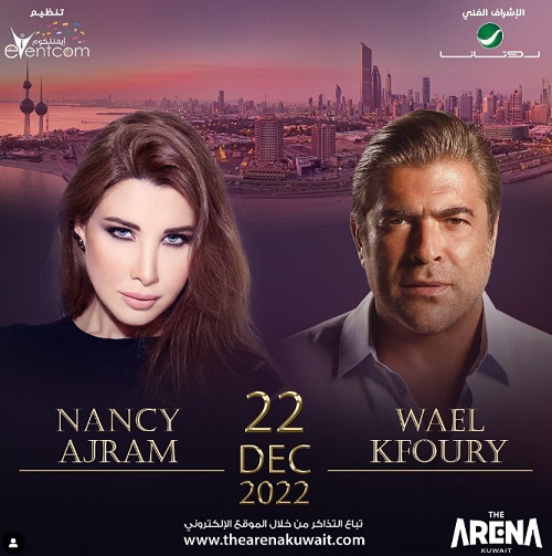 يلتقي النجمان اللبنانيين وائل كفوري و نانسي عجرم في الكويت لإحياء  حفل غنائي  يوم 22 ديسمبر/كانون الاول . و كالعادة سيقدّم كل منهما  باقة منوعّة من أجمل أغانيهما القديمة والحديثة والتي حفظها جمهور الثنائي عن ظهر قلب .