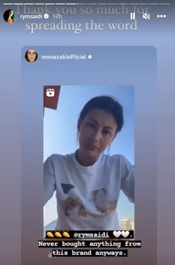ونشرت النجمة منى زكي فيديو ريم عبر خاصية (ستوري) على حسابها على موقع (إنستغرام) قائلة:( لم اشتر يوما من هذه العلامة على كل الأحوال)، كما نشرت كل من النجمات كندة علوش وإيمان العاصي على حساباتهم على (إنستغرام) منشورات تدعم حملة المقاطعة التي شنتها التونسية ريم السعيدي.