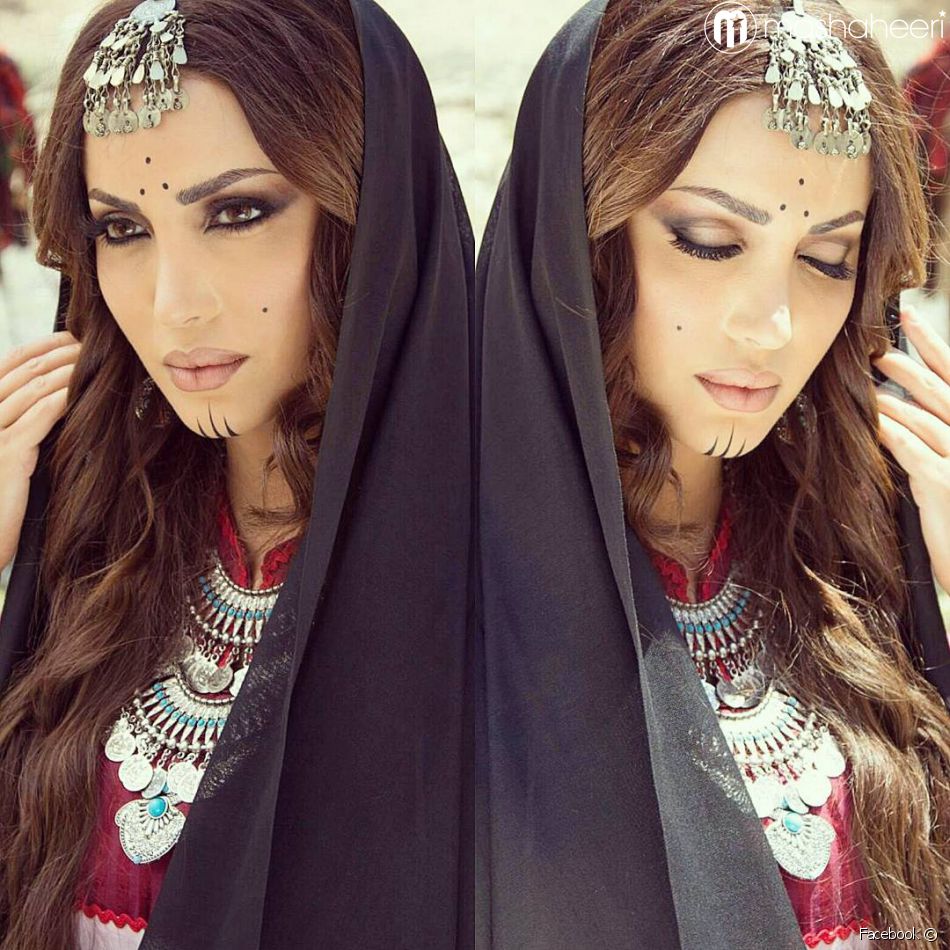 وظهرت الفنانة الشابة بدور «الشيخة العفراء» بالعباءة العربية، والخمار، إضافة الى الوشم العربي التقليدي على الوجه، في الإطلالة البدوية التي زاد من ألقها الكحل العربي في محيط العينين.