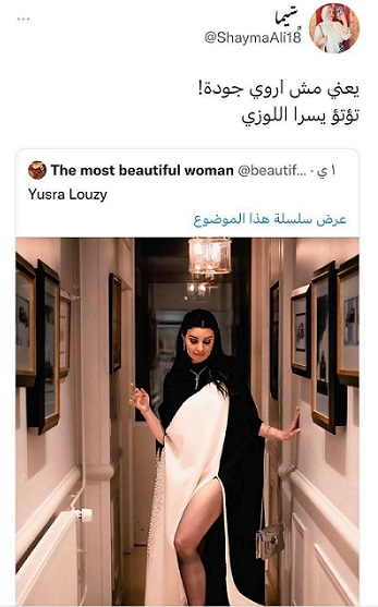 وعلق رواد السوشيال ميديا علي الخلط بين كل من يسرا اللوزي وأروي جودة، وأنه يوجد اختلاف في شكلهما، ولا يوجد امكانية للخلط بينهما، وجاءت التعليقات عبر (تويتر)، كالاتي: