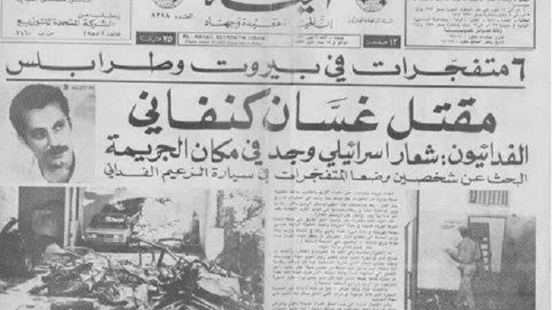 يوافق اليوم الذكرى الثالثة والأربعين لاستشهاد الأديب غسان كنفاني الذي اغتيل على يد الموساد الاسرائيلي عام 1972 حيث كان عمره آنذاك 36 عاما، وذلك بتفجير سيارته في العاصمة اللبنانية بيروت.