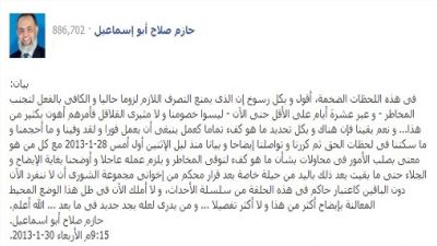 نشر الشيخ حازم صلاح أبو اسماعيل على صفحته على موقع الفيسبوك بيانا اعتبره العديد من النشطاء المصريين بمثابة "لغز" لم يفهموا الهدف منه أو ماذا يريد الشيخ حازم أبو اسماعيل قوله من خلال هذا البيان، وقام عدد من نشطاء موقع التواصل الاجتماعي تويتر بالتعليق بطريقة ساخرة على البيان: