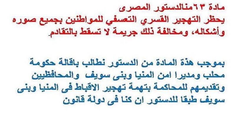 دشن المصريون "هاشتاق" على موقع التدوينات القصيرة"تويتر" بعنوان:#لا_لتهجير_اقباط_قريه_كفر_درويش وذلك بعد مهاجمة مصريين لمواطن في القرية كان قد نشر على "فيسبوك" صورة مسيئة للاسلام.