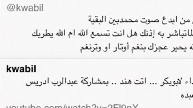 أثارت الكاتبة والناشطة السعودية حصة آل شيخ أزمة في السعودية بعد أن نشرت تغريدة في حسابها الشخصي على موقع تويتر قالت فيها في حديث عن الفنان محمد عبده "سبحان من أبدع صوت محمد بين البقية ما تدري لما تباشر به أذنك هل أنت تسمع الله أم الله يطربك أم أنه الله يحير عجزك بنغم أوتار أو وتر نغم". التغريدة أثارت ردود فعل غاضبة بشكل واسع في السعودية، سواء من جانب القراء أو على مستوى شخصيات دينية معروفة مثل الشيخ عبد العزيز الفوزان، من جانبها نفت الكاتبة السعودية حصة آل الشيخ، علاقتها بـ "حساب تويتر" والتغريدة المُسيئة التي نُشرت، مؤكدةً أن الحساب منتحل لشخصيتها، والتغريدة لا تخصّها، وأنها لا يمكن أن تصدر منها أو تمثلها، نافيةً مسؤليتها عنها تماماً. وقد كتبت بشائر محمد مدافعة عنها تقول: