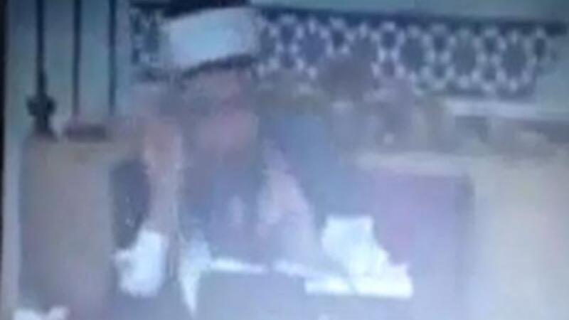 - الشيخ بعد التفجير مسك راسه وواضح ان اصابته بسيطه لكن لاحظ الثانية 12 هناك شخص وقف على راسه وبعدها هرب !