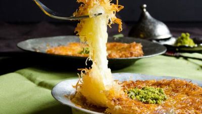 - بعد امتصاص الكنافة الشراب رشي الفستق وبالهنا والشفا.